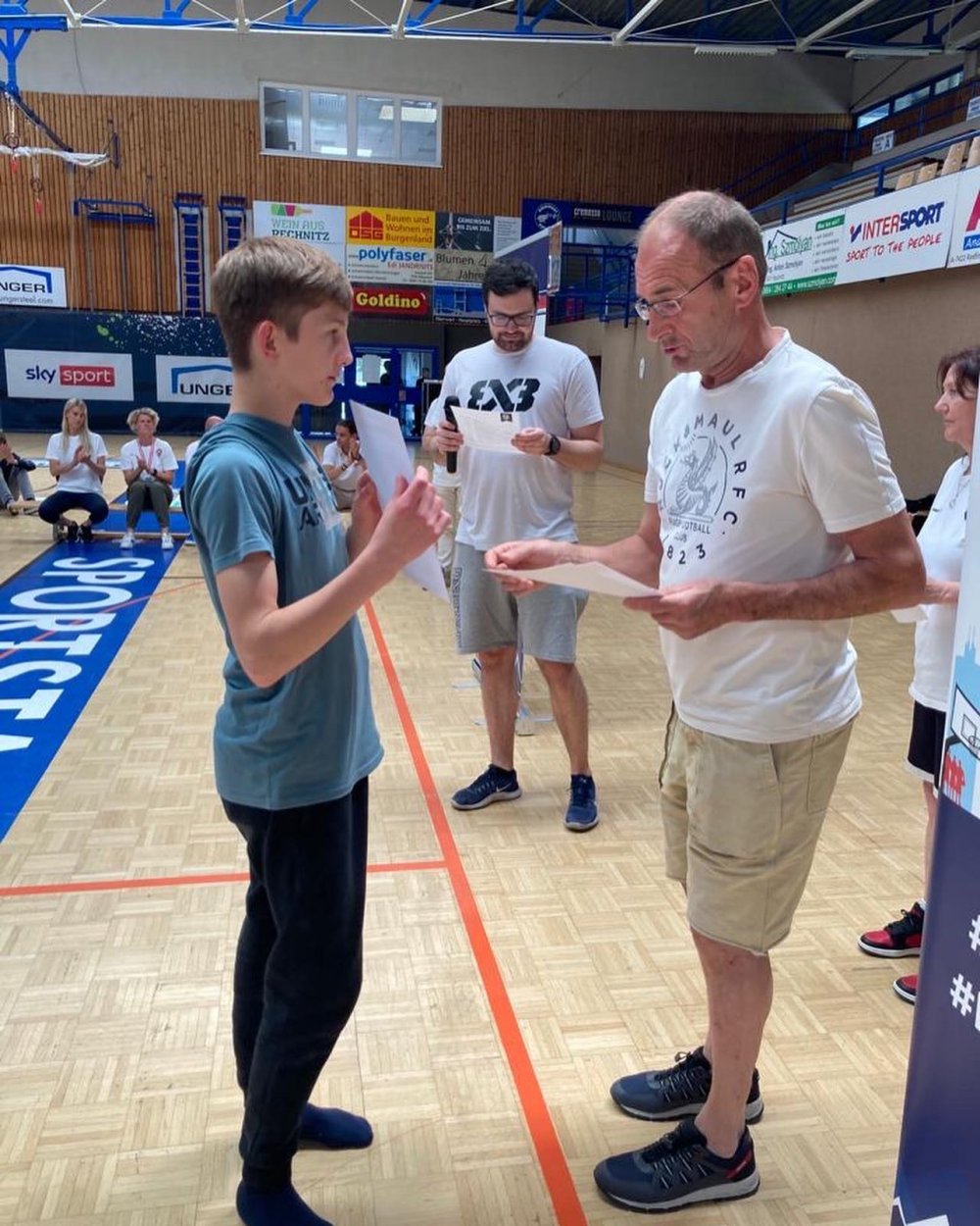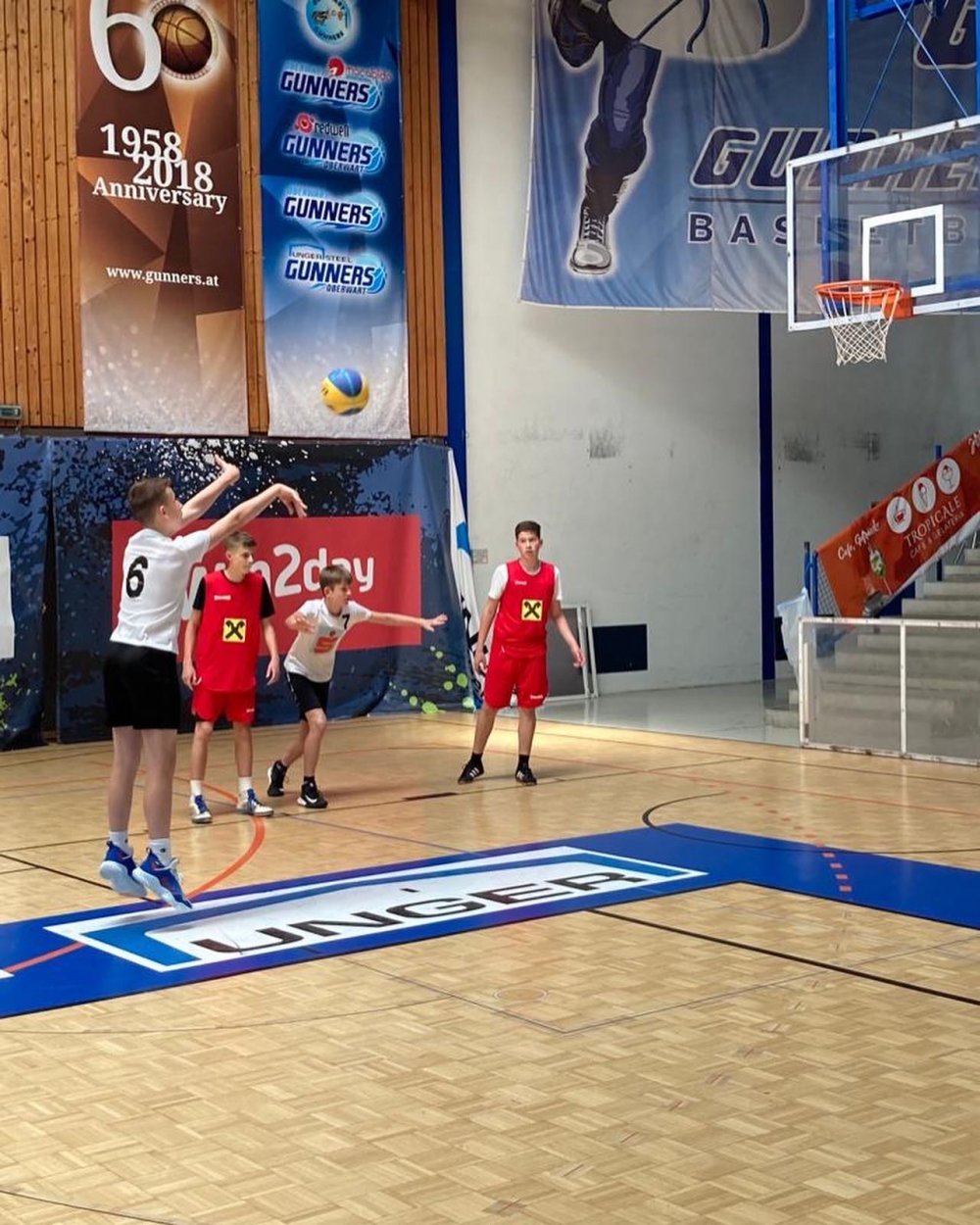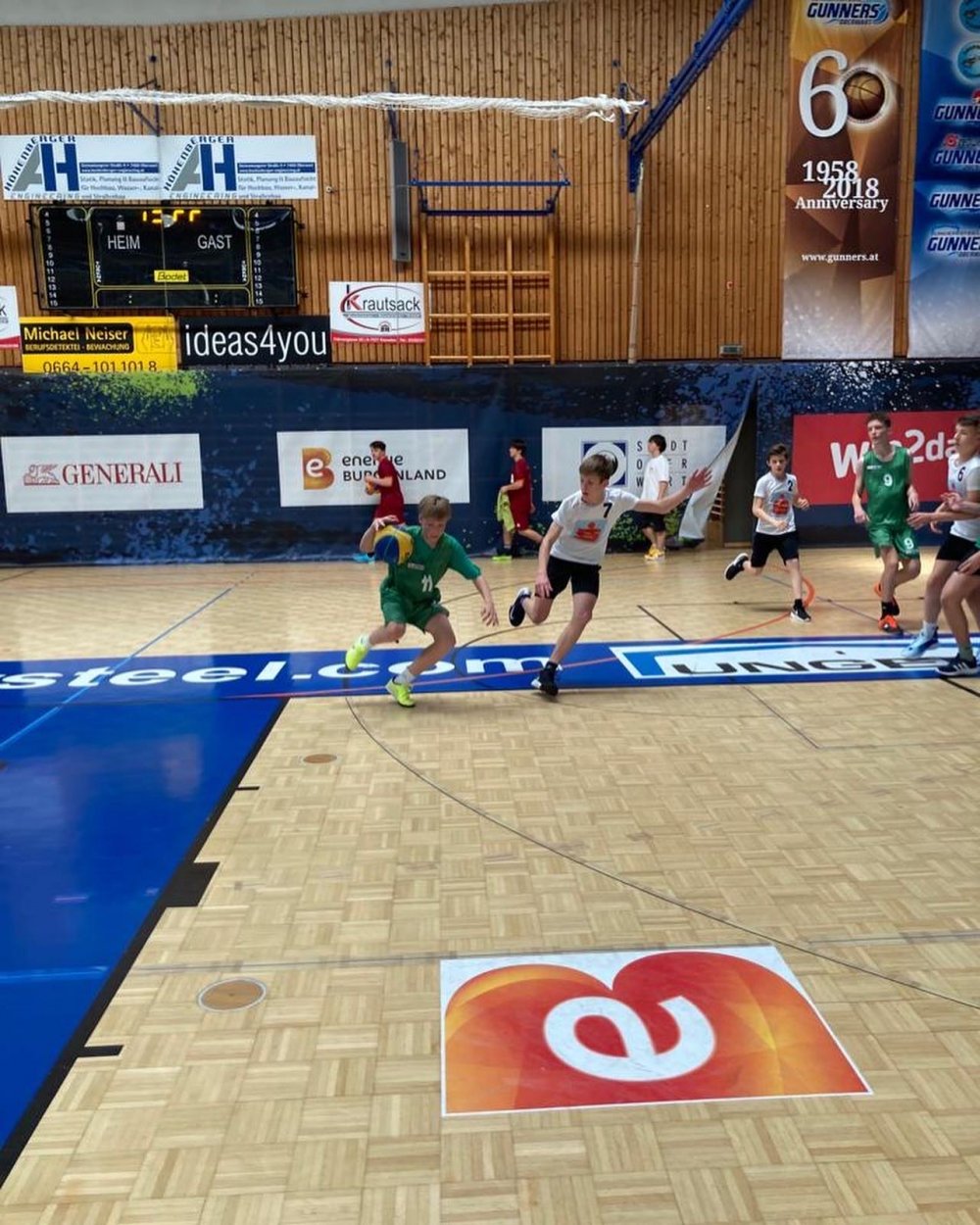 Um effektives Angreifen und Verteidigen ging es im 3x3 Basketball School Jam-Bewerb am 11.05.2022 in der Sporthalle Oberwart. Sieben Minuten lang spielten drei Schüler, die aus derselben Klasse kommen mussten und nur mit einem Vereinsspieler antreten durften, auf dem "halfcourt" um den Sieg gegen ein anderes Team. Unsere Körbe für das Wimmer Gymnasium warfen Jakob Kurien, Marin Babic, Laurenz Lehner und Michael Jalits- Schüler aus der 3C Klasse.