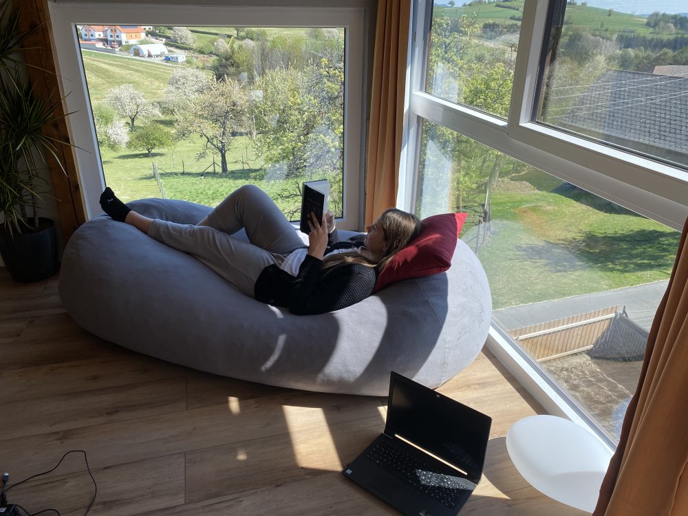 19:00 Uhr: Da mache ich meistens Literaturarbeiten. Ich setze mich oft mit meinem Laptop und einer Decke auf die Terrasse, um die letzten Sonnenstrahlen zu genießen. Dieses Gefühl von Freiheit inspiriert mich sehr und ich finde, dass meine Texte dadurch durchdachter sind. Außerdem bemerke ich eine große Konzentrationssteigerung. (Jakob Laschober)