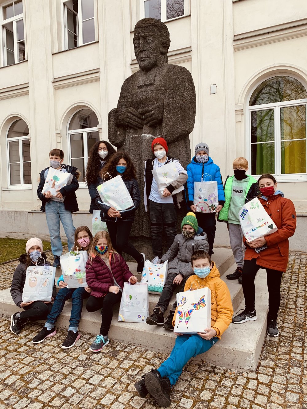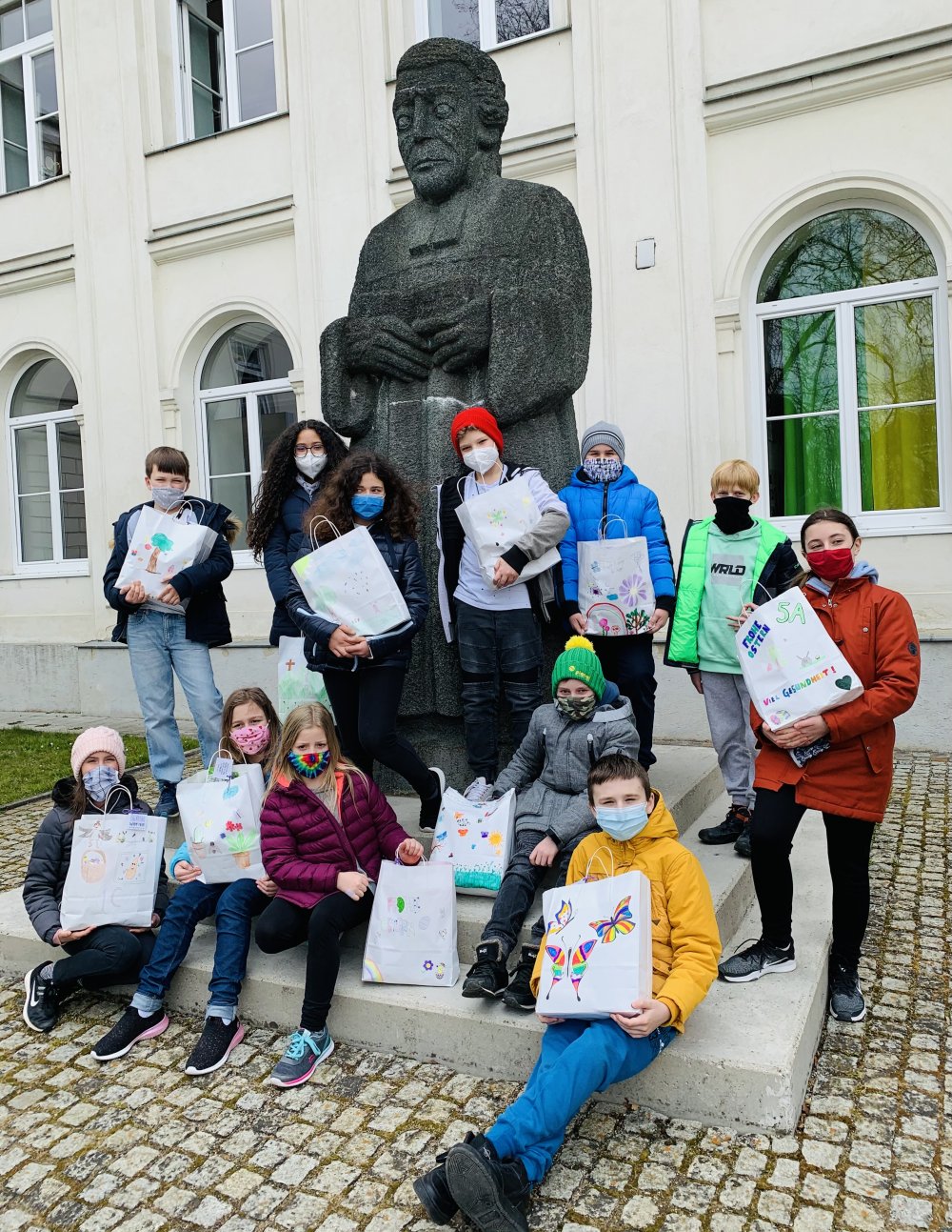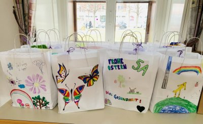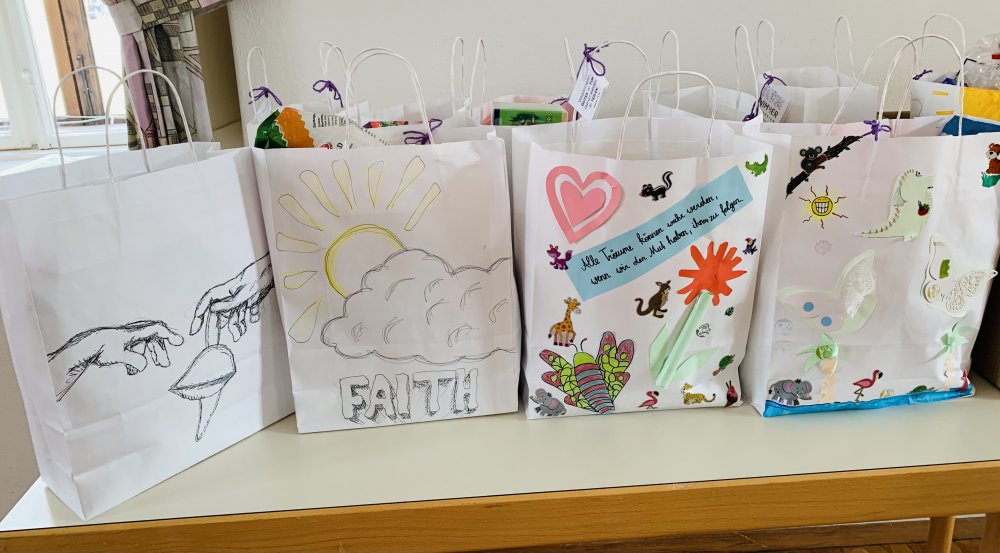 Als persönliche Note der WimmerSchulGemeinschaft gestalteten unsere Schülerinnen und Schüler im Religionsunterricht weiße Papiertaschen. Diese wurden individuell bemalt, beklebt und mit einem Spruchkärtchen versehen.