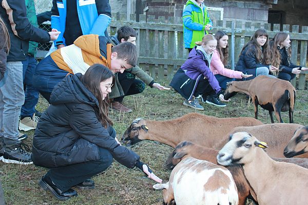 Das abwechslungsreich gestaltete Programm zeigte, wie das Ganze so abläuft mit der Milch, bevor sie im Supermarkt gekauft werden kann. Dass sich die Zunge einer Kuh ziemlich rau anfühlt, weiß die 4C seit dem 18. Dezember auch ... Aber das ist längst noch nicht alles, was die Schüler:innen von diesem Vormittag an Erfahrungen und Wissen mitgenommen haben: Selbstgemachte Salzstangerl schmecken einfach besser als gekaufte. Aus Vanillekipferlteig muss man nicht unbedingt ein Kipferl machen. Das Basteln von Tischdeko macht nicht nur das Festessen schöner. Auch Schafe haben einen Flugmodus. Einem knuddeligen Hund fliegen alle Herzen zu. Auch schüchterne Katzen mögen es, gestreichelt zu werden. Und - mit den Klassenkolleg:innen kann man ganz schön viel Spaß haben!