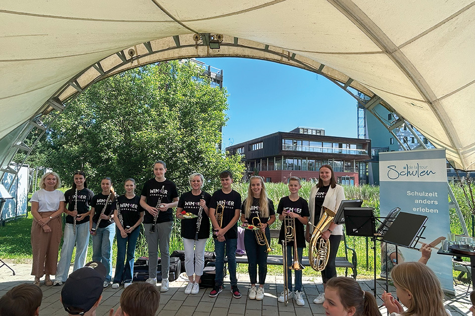 Am Mittwoch, den 05. Juni 2024, präsentierten sich zwei Ensembles des Wimmer Gymnasiums musikalisch in der de La Tour Schule Davinci Hartberg. Eingeladen waren alle Klassen der Primaria und Sekundaria der Davinci Schule. Aufgrund des sonnigen Wetters konnte der Pavillon im Schulhof für unser Konzert genutzt werden. Die Davinci Schule kooperiert seit einigen Jahren mit dem Wimmer Gymnasium, da wir als Privatschulen mit unserem musikalischen Schwerpunkt viele Gemeinsamkeiten haben.