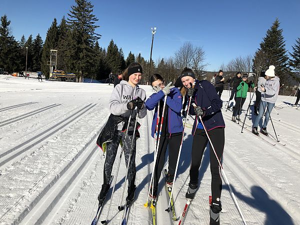 Nach einer kurzen Busfahrt und dem Ausleihen des Materials vor Ort, bekamen die Schülerinnen und Schüler eine Einführung in den Langlaufsport. Jeder konnte sich am Anfängerhang probieren und mit angeleiteten Übungen die Sicherheit am Schnee verbessern. Danach ging es auf die Loipe und die Schüler lernten das Langlaufen richtig kennen.