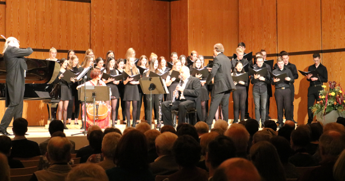 Das bereits zur Tradition gewordene Oberschützer Neujahrskonzert mit dem Girardi Ensemble Graz fand heuer am Sonntag, den 14. Jänner im Kulturzentrum statt. Als Solistin brillierte Sopranistin Elisabeth Pratscher, die an unserer Schule im künstlerischen Basislehrgang Gesang unterrichtet. Der Chor des Musikgymnasiums unter der Leitung von Markus Kern begeisterte unter anderem mit dem Donauwalzer in der selten gehörten, aber sehr reizvollen gesungenen Fassung. Moderiert wurde der Abend von dem Musiker, ORF-Mitarbeiter und ehemaligen Lehrer des Wimmer Gymnasiums, Gerhard Krammer. Mit dem heiteren und schwungvollen Programm stimmten die Mitwirkenden das Publikum auf ein hoffentlich ebensolches Neues Jahr ein.