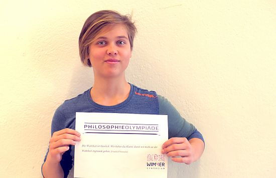 Mit ihren logisch schlüssigen Gedanken zum Nietzsche-Zitat Die Wahrheit ist häßlich. Wir haben die Kunst, damit wir nicht an der Wahrheit zugrunde gehen. schrieb sich Julia Zink (8A) auf den 2. Platz der Philosophieolympiade und sicherte sich mit ihrem inspirierenden Essay eine Nominierung für den Bundesbewerb in Salzburg. Die JurorInnen zeigten sich äußerst beeindruckt von ihrer sprachlichen Leistung: „Dieser Essay lebt!" Wir gratulieren Julia zu ihrer rhetorischen Überzeugungskraft, ihrer Motivation und ihrem Engagement.