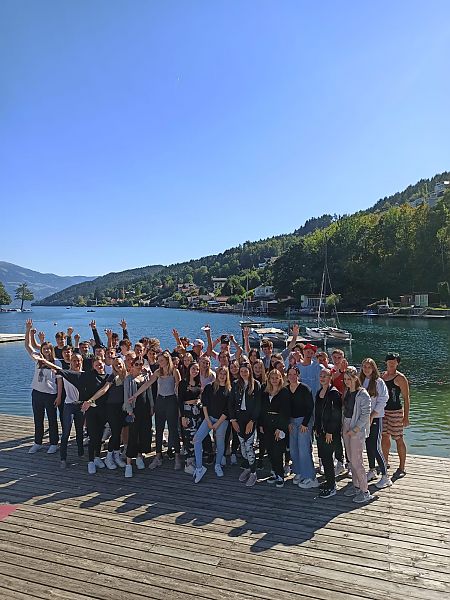 "Leinen los" hieß es in der dritten Septemberwoche für die Burschen und Mädchen unserer 7. Klassen. Nach einem Jahr Zwangspause durch Corona konnte die beliebte Sport-Sprachwoche in Seeboden am Millstätter See in Kärnten wieder stattfinden. Auf dem Stundenplan unserer Schüler*innen standen in dieser Woche Sportarten wie Segeln, Surfen, Kajak, Mountainbike, Klettern, Tanzen und Tennis. Begriffe wie "Bunny Hop", "Flow", "Steuerbord", "Backbord", "Luv und Lee", Shuffel, Topspin uvm. wurden den Kids näher gebracht. Neben dem Sport gab es aber auch jede Menge Englisch mit den Native Speakern Jess und Juli von der Sprachschule Berlitz. In Kleingruppen zu zehn Personen wurden am Vormittag Topics wie Körpersprache, Kulturen, Klima und Religionen eifrig auf Englisch diskutiert und auch Bewerbungsgespräche für diverse Jobangebote auf Englisch geübt. Am Nachmittag übernahmen die Sportlehrer des Hotel Royal X das Kommando und sorgten für den einen oder anderen Muskelkater. Zwischendurch gab es für unsere Schüler*innen die Möglichkeit für viele gemeinsame sportliche Freizeitaktivitäten wie Krafttraining im Fitnesscenter, Tennis, Beachvolleyball, Schwimmen, Walken, Tretboot fahren uvm. Einige Mutige wagten sich bei den herrlichen spätsommerlichen Temperaturen auch in den erfrischenden See. Es war eine wunderschöne gemeinsame Woche in der endlich wieder Zeit für ein gemeinsames Miteinander abseits von Schule und Stundenplan war.