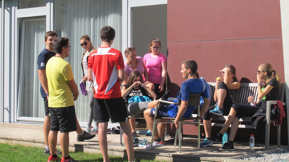 "Just do it!" - That was the slogan of our Sprach-Sportwoche in Seeboden ("Lakefloor") at the Millstättersee ("Millcitylake"). We stayed there for five days improving our English skills by talking to native speakers. Further, we were taught different sports, such as tennis, volleyball, dancing, horse riding or climbing. Fortunately, the weather was quite good so that we could enjoy our free time at the lake. All in all we had a great week and are now almost perfect English speakers and professional sportsmen and -women.