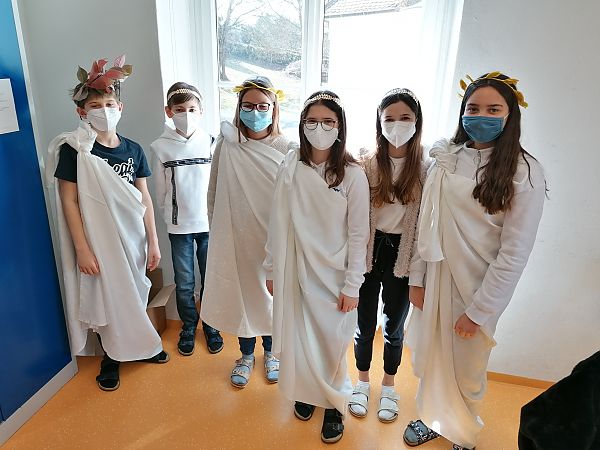 Das absolute Highlight des Vorlesetages an unserer Schule war heuer, dass die SchülerInnen sich auch dem Motto des Leseevents entsprechend gekleidet hatten. So fanden sich in der Klasse 1C (Mag. Birgit Samer) und 2A (Mag. Denise Frühwirth) viele gruselige Gestalten ein, um verschiedenen Gruselgeschichten zu lauschen. In der 2C (Mag. Claudia Wukitsch-Rohr) waren griechische Göttinnen und Götter anzutreffen, die griechische Sagen in vereinfachter Form vorgelesen bekamen und in die Welt der griechischen Mythologie abtauchten.