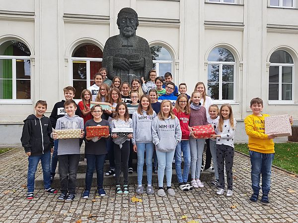 Weihnachten im Schuhkarton ist eine Aktion, die jedes Jahr aufs Neue vielen Kindern aus armen Ländern eine große Freude bereitet. Für den besonderen Anlass Weihnachten befüllen viele Menschen aus dem deutschsprachigen Raum Schuhkartons mit z.B. Spielsachen, Stiften, Blöcken, Zahnbürsten und anderen kleinen Geschenken. Im Jahr 2018/19 werden die Kartons voraussichtlich in folgende Länder geschickt: Georgien, Lettland, Litauen, Montenegro, Polen, Republik Moldau, Rumänien, Serbien, Slowakei und Ukraine. Die Klassenvorständin der 2B des Wimmer Gymnasiums Frau Professor Andrea Pahr hatte die Idee, mit ihrer Klasse mitzuwirken. Zuerst haben wir den Schuhkarton mit Geschenkpapier eingepackt. Danach haben wir die Box mit den verschiedensten kleinen Geschenken befüllt. Mit einer netten Weihnachtsbotschaft und einem Foto von uns waren die Kartons fertig. Es macht doch immer Spaß, anderen Menschen zu helfen!