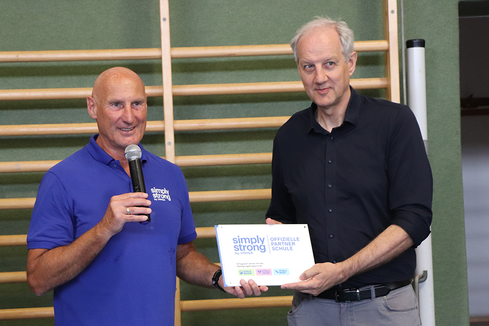 Am 17. Juni war es so weit: Das Wimmer Gymnasium wurde als erste burgenländische Schule zur Simply Strong Partnerschule ausgezeichnet. Die feierliche Übergabe der Urkunde erfolgte durch Dr. Werner Schwarz, der sich in seiner Ansprache herzlich für das außergewöhnliche Engagement der Schule für mehr Bewegung im Unterricht bedankte. Direktor Mag. Klaus Pahr nahm die Auszeichnung mit Stolz entgegen.