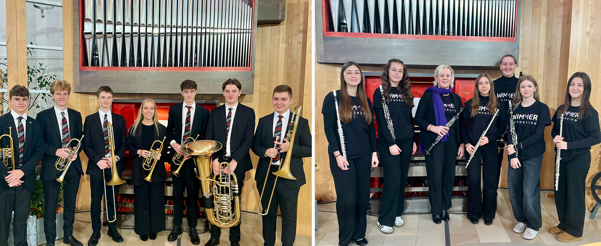 Am Sonntag, den 19. Oktober 2025, wurde aus der evangelischen Pfarrkirche Oberwart der ZDF-Fernsehgottesdienst unter dem Motto "Schau, es geht doch" live übertragen. Im Mittelpunkt des Gottesdienstes standen berührende Geschichten von Menschen aus der Gemeinde Oberwart, die Pfarrerin Sieglinde Pfänder vorstellte - Geschichten von Mut, Zuversicht und Hoffnung. Einen bedeutenden Beitrag leisteten dabei Schüler*innen des Wimmer Gymnasiums: Das Holzbläserensemble des Musikgymnasiums unter der Leitung von Sabine Zumpf sowie das Blechbläserensemble "Wimmer Brass" unter der Leitung von Elisa Heuchler beeindruckten mit festlichen Klängen. Maximilian Erdely - Schüler aus der 5M Klasse - sorgte für bewegende Orgelklänge. Auch die "Singgemeinschaft Oberschützen" wirkte gesanglich am Gottesdienst mit. Die Übertragung im ZDF erreichte ein großes Publikum im gesamten deutschsprachigen Raum - wir gratulieren allen Mitwirkenden herzlich!